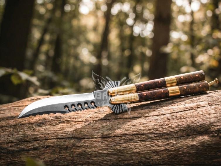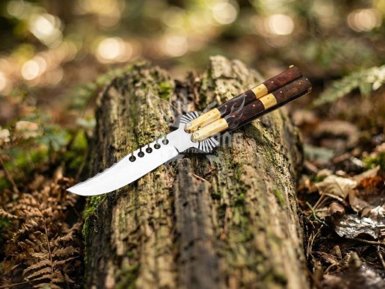 Experience ultimate precision, craftsmanship, and style with this Handmade D2 Steel Balisong Knife featuring a unique Eagle Shape Blade. This premium butterfly knife combines strength, elegance, and superior performance, making it a must-have for collectors, flippers, and knife enthusiasts. The rosewood handle with solid brass bolsters provides an elegant, durable grip, while the premium leather sheath ensures safe storage and transport.Free Included Box.