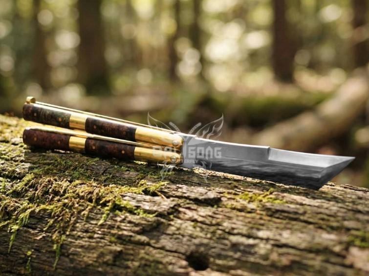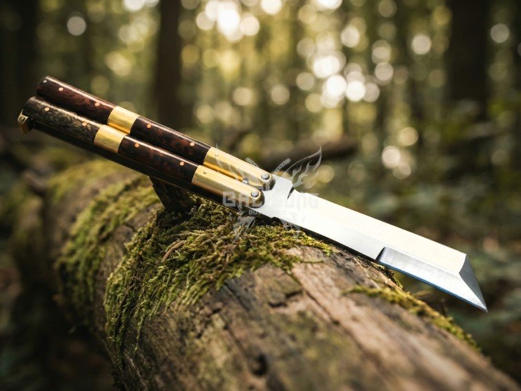 This Handmade D2 Steel Balisong Knife, designed as a premium butterfly knife for collectors, flippers, and knife enthusiasts. This luxury balisong combines high‑performance D2 tool steel, a powerful tanto blade, and an elegant rosewood handle with brass bolsters, creating a perfect balance of strength, style, and durability.